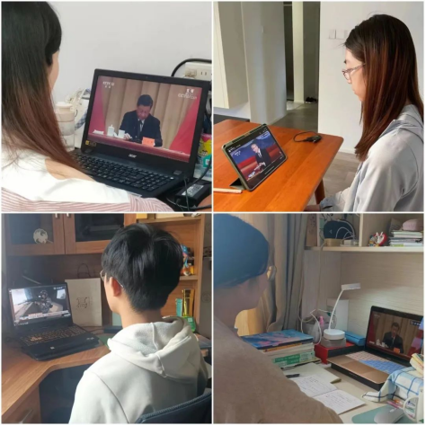 青年学生居家收看直播