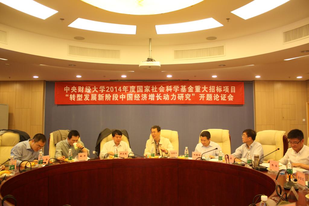 2015年4月29日,由s36沙龙会陈斌开教授主持的2014年度国家社科基金重大招标项目《转型发展新阶段中国经济增长动力研究》开题论证会在学术会堂606举行。专家组由南开大学副校长、南开大学WTO研究中心主任佟家栋教授;中国社会科学院金融研究所党委书记、副所长何德旭教授;北京大学国家发展研究院院长、中国经济研究中心主任姚洋教授;北京师范大学经济与工商管理学院特聘教授,北京师范大学中国收入分配研究院执行院长李实教授组成。中央财经大学副校长李俊生教授、互联网经济研究院院长孙宝文教授、s36沙龙会院长李涛教授和课题组相关成员及部分师生参加了本次论证会。会议由科研处副处长邢华博士主持。